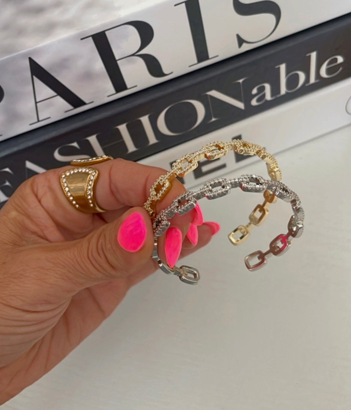 One of my vest favorite bangles! It looks so high end! This is gold, plated, and stainless steel