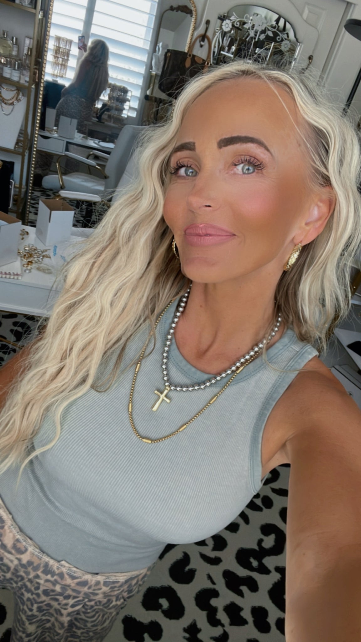 Stainless Steel and 18k gold plated. Amazing quality. Approx 18 inches.
