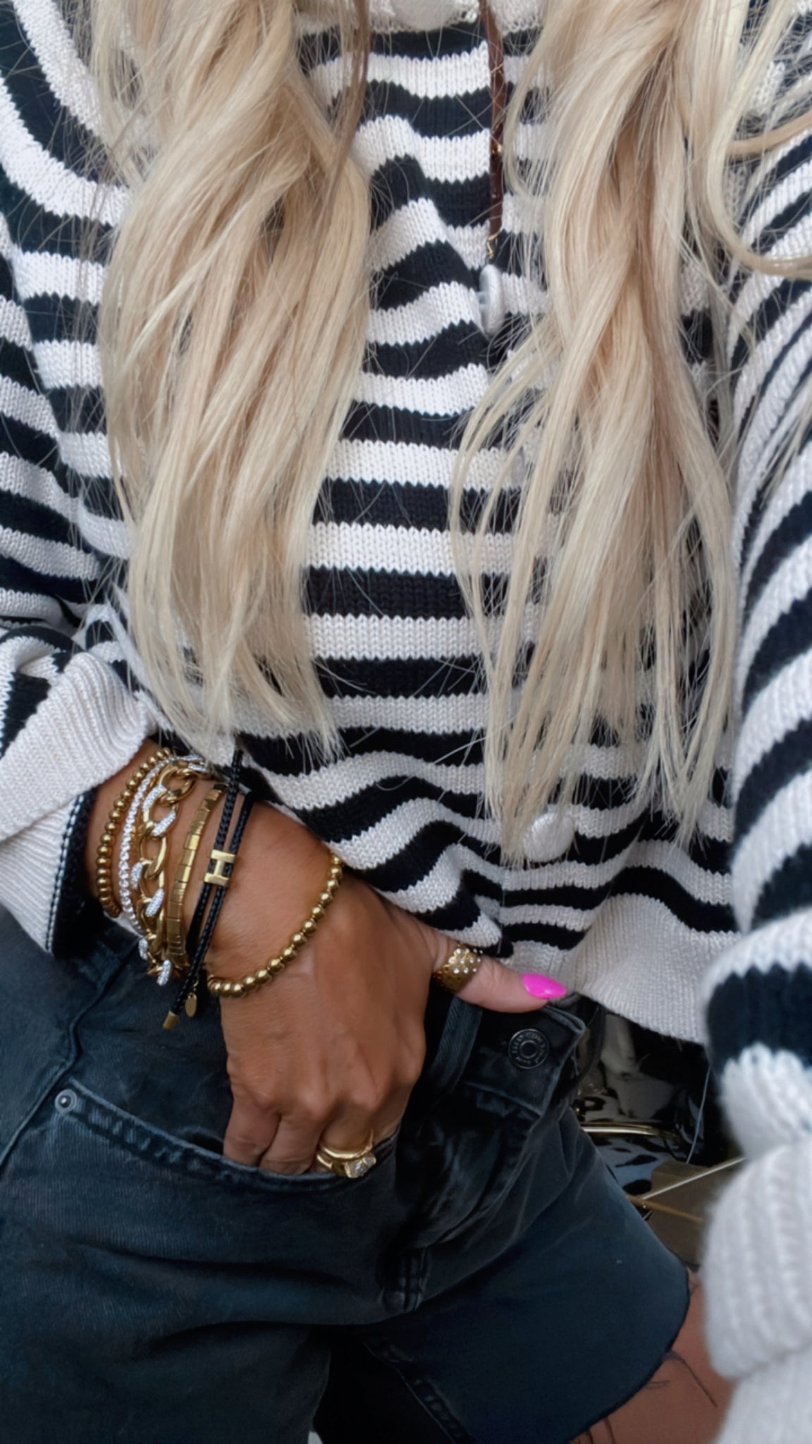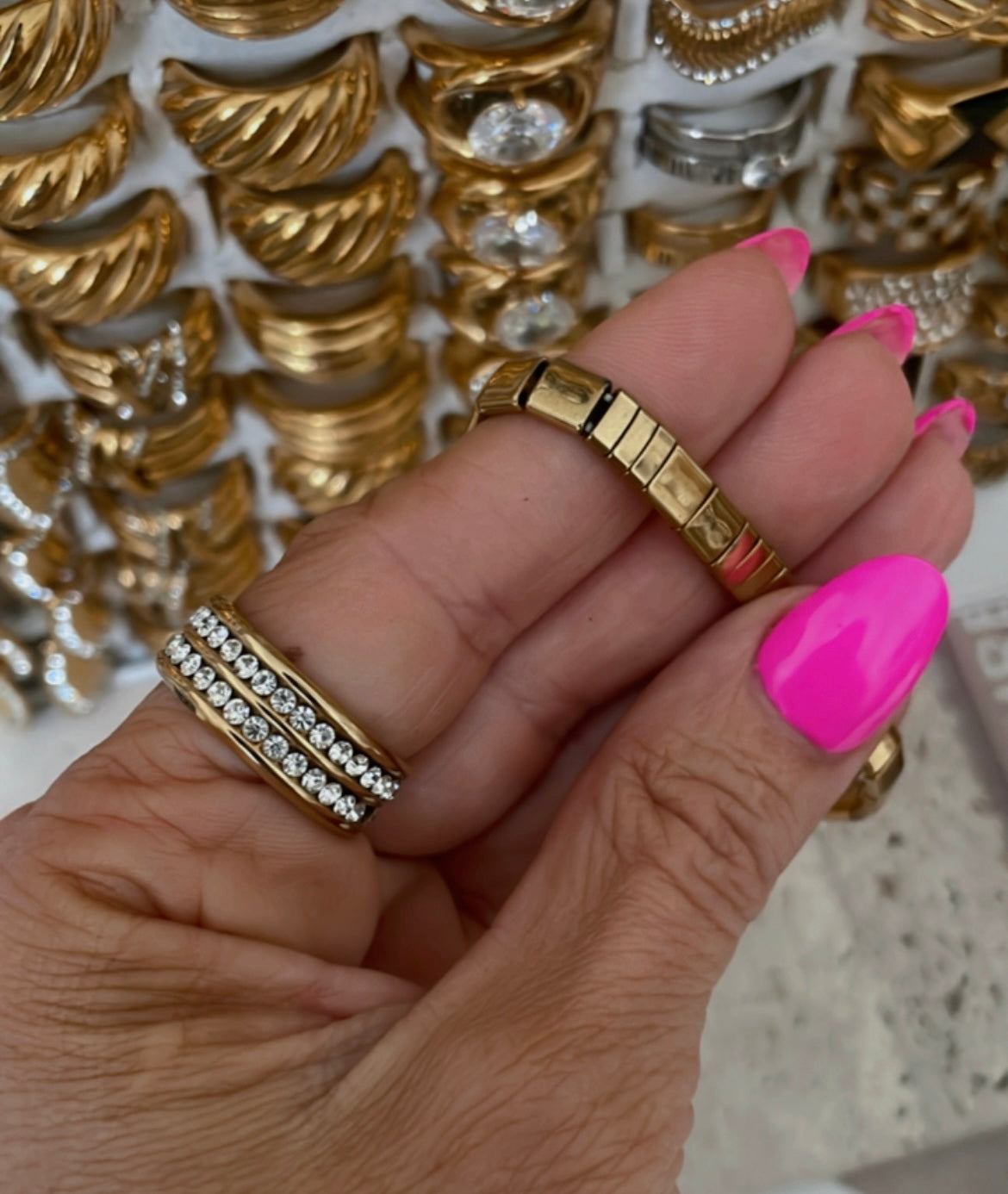 Stainless Steel. This stretchy gold piece adds such great shape and texture to any bracelet stack!
