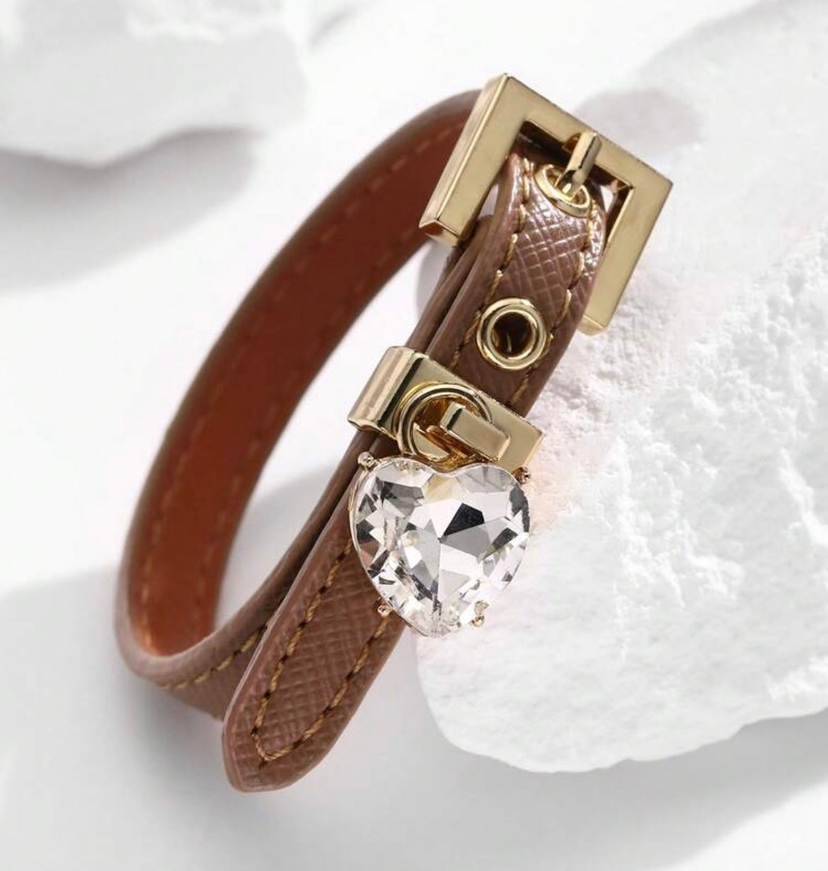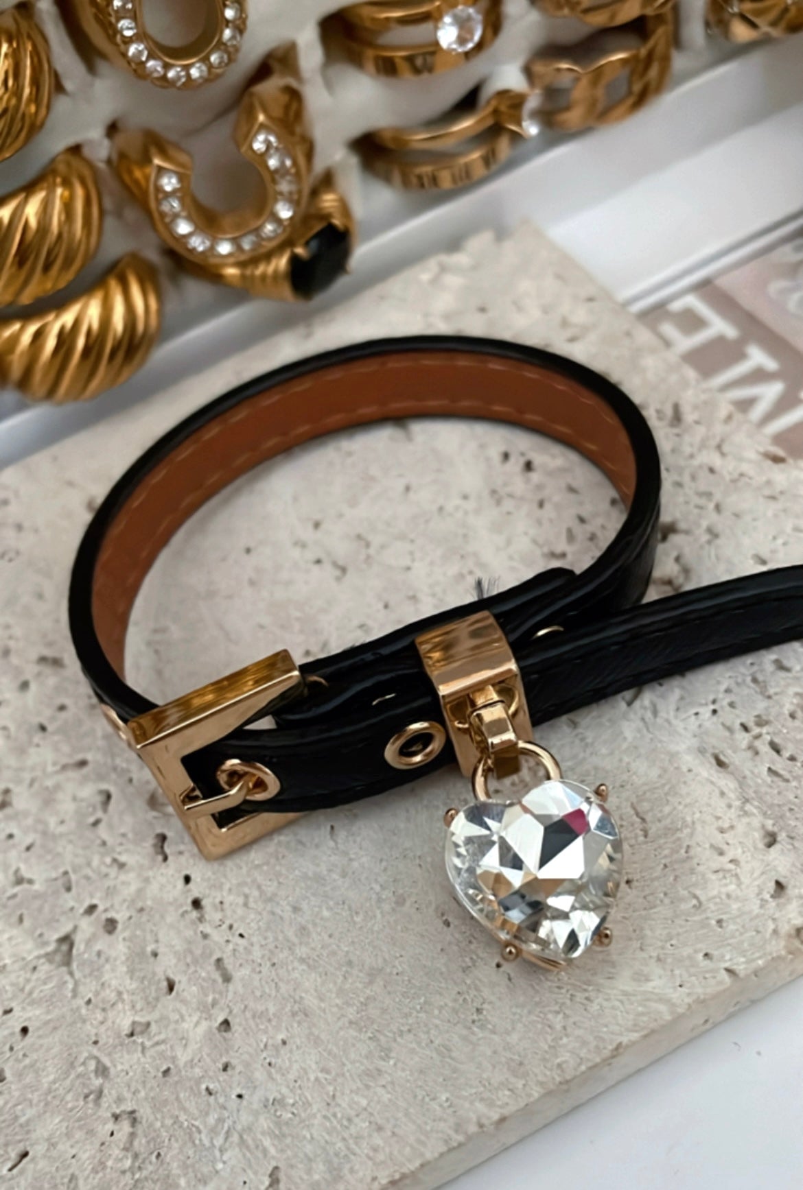 • Load image into Gallery viewer, Leather Heart Buckle Bracelet