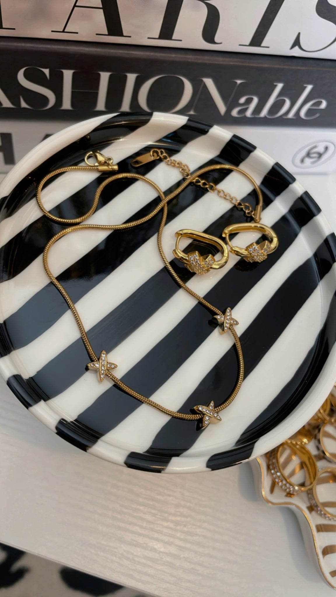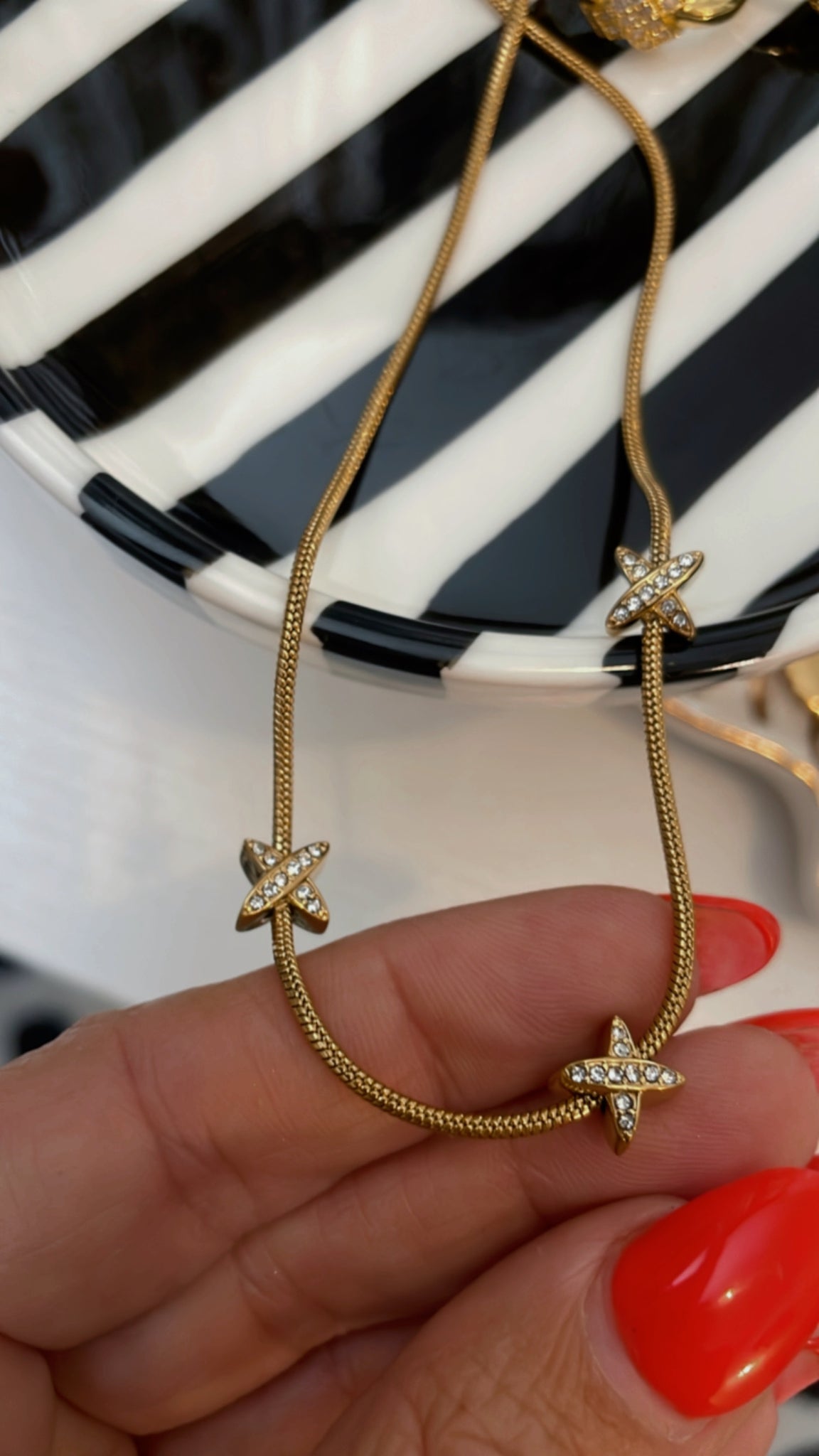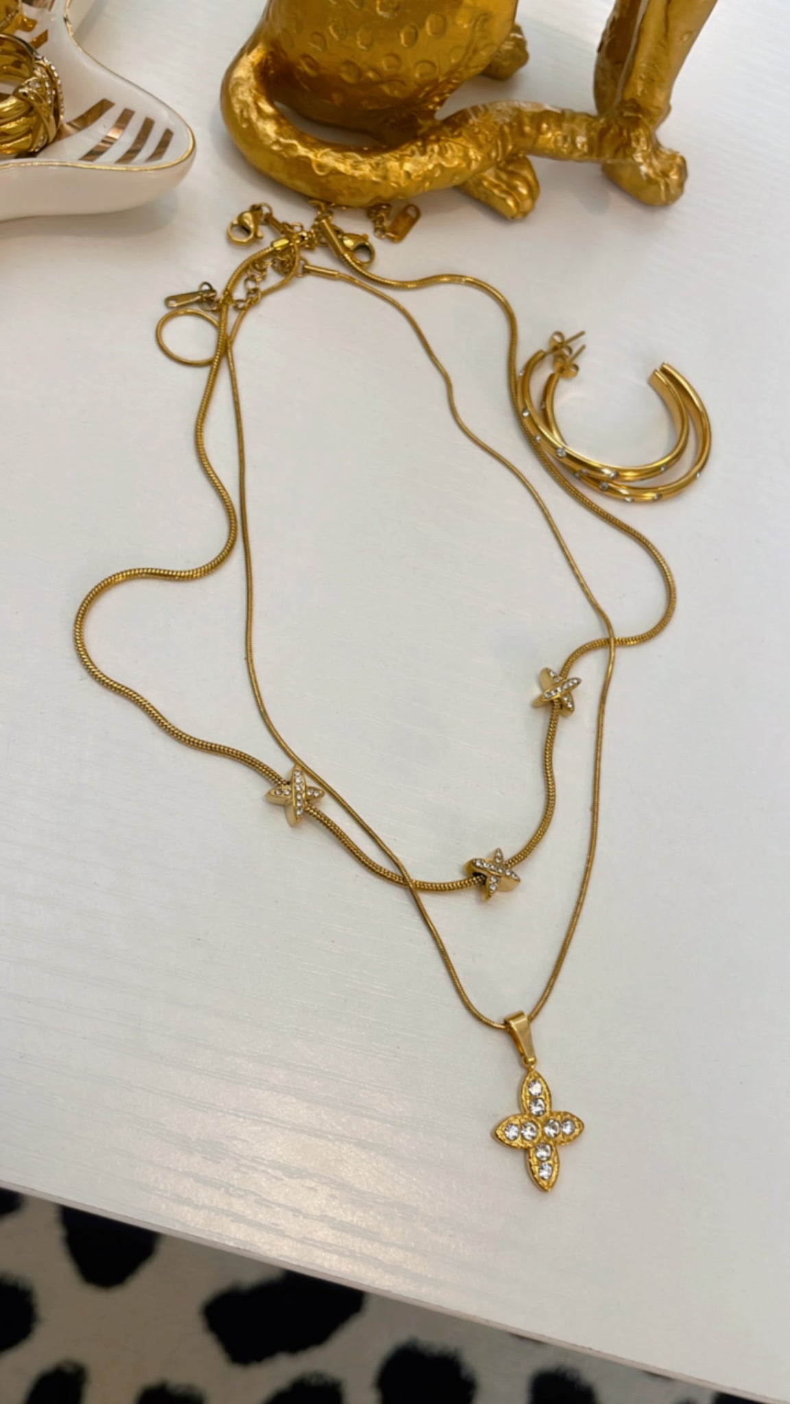 18k gold plated and tarnish resistant! This necklace is a made up of 3 gorgeous charms a classy rope chain and is great for stacking! Measuring at approx 17 inches.