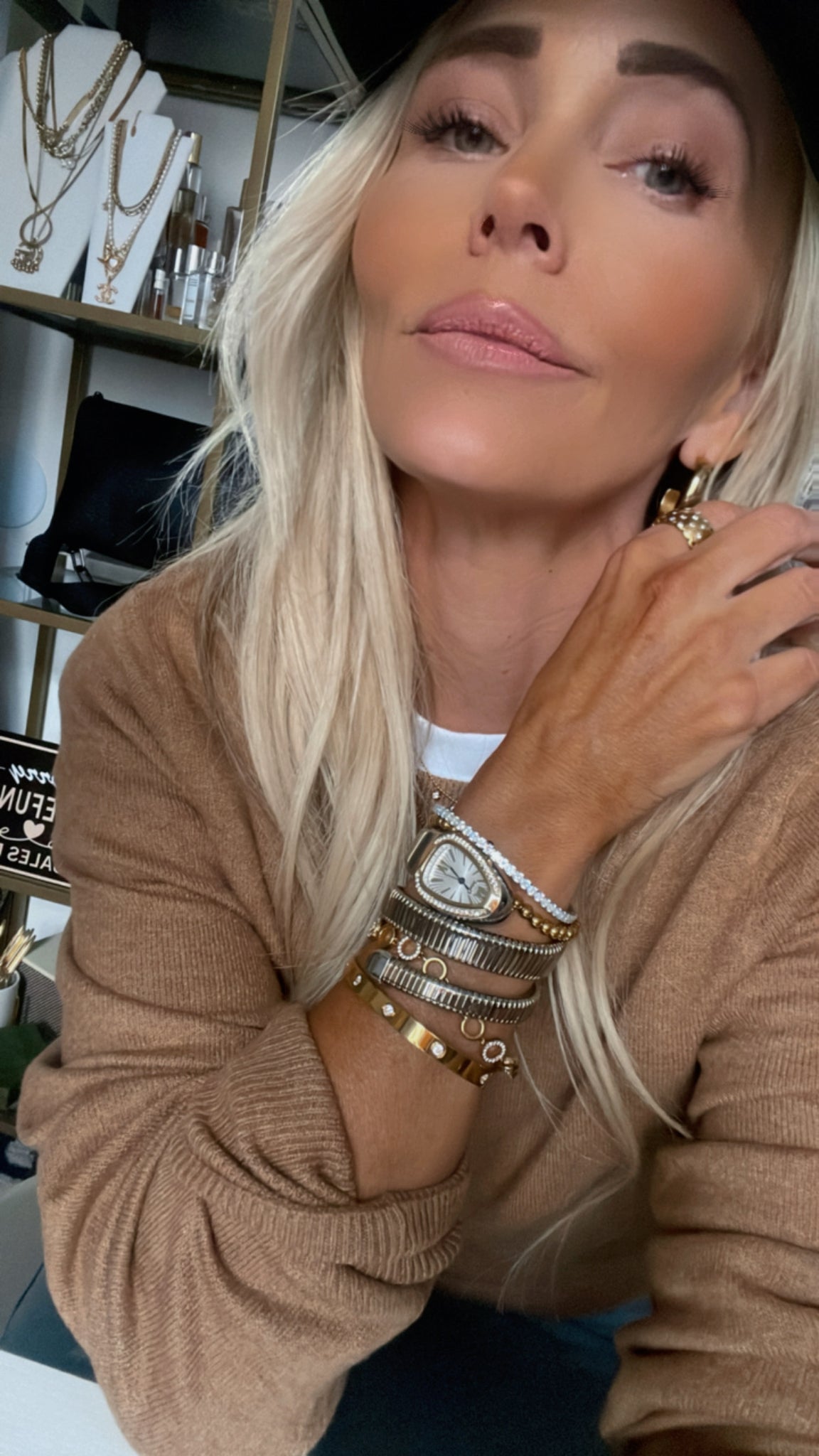 Stainless Steel. This is a functioning watch and is absolutely stunning!
